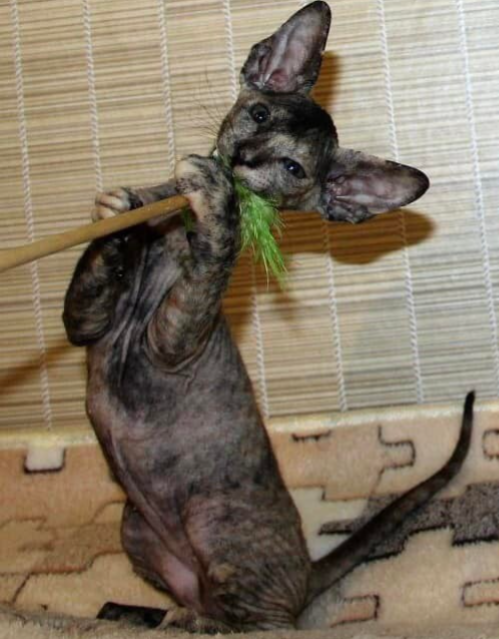Combinant le caractère extraverti du Donskoy et le tempérament possessif du Siamois et de l’Oriental, le Peterbald, c’est de la dynamite ! Si vous voulez un chat calme et tranquille, passez votre chemin car, lui, ne vous laissera jamais en paix : bavard, collant, hyper actif… Mais ce qui est une gêne pour les uns est un plaisir pour les autres et ceux qui aiment le Peterbald trouveront fades toutes les autres races de chats, le Siamois et l’Oriental exceptés, et pour cause ! Comme leur ancêtre Donskoy, certains Peterbalds nus peuvent transpirer beaucoup. Il faut donc les baigner une fois par semaine, ce qui est une pure formalité car ils adorent être caressés sous l’eau tiède !
